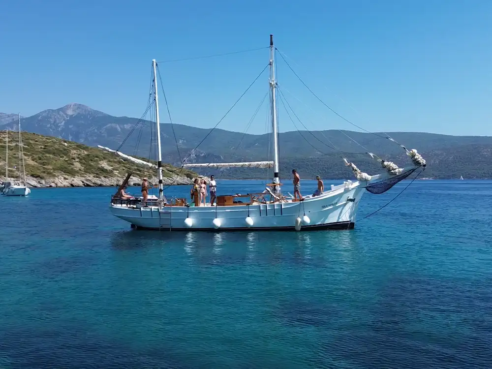 Experience the timeless charm of sailing aboard our elegant wooden yacht, handcrafted for leisurely exploration and authentic Greek island vibes. With space for up to 20 guests, this is the perfect way to enjoy Samos and the surrounding islands in a relaxed and social setting.